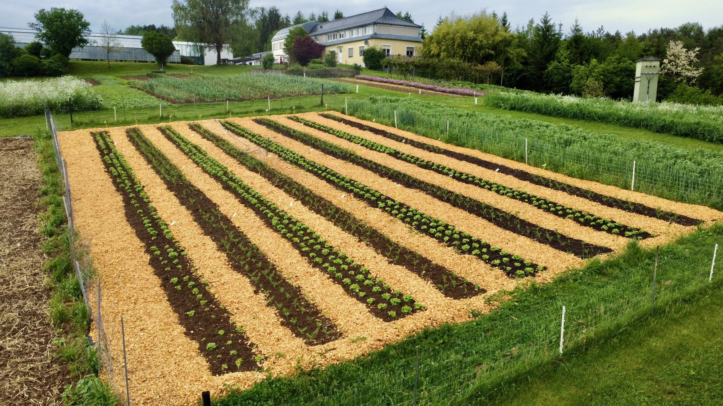 Die kleine Versuchs-Marktgärtnerei in der Versuchsstation für Spezialkulturen Wies. Hier wurde der No Dig Anbau von wissenschaftlicher Seite untersucht. Die Versuche werden auch nach Projektende der Operationellen Gruppe Marktgärtnerei fortgesetzt. (Foto: Johannes Pelleter)